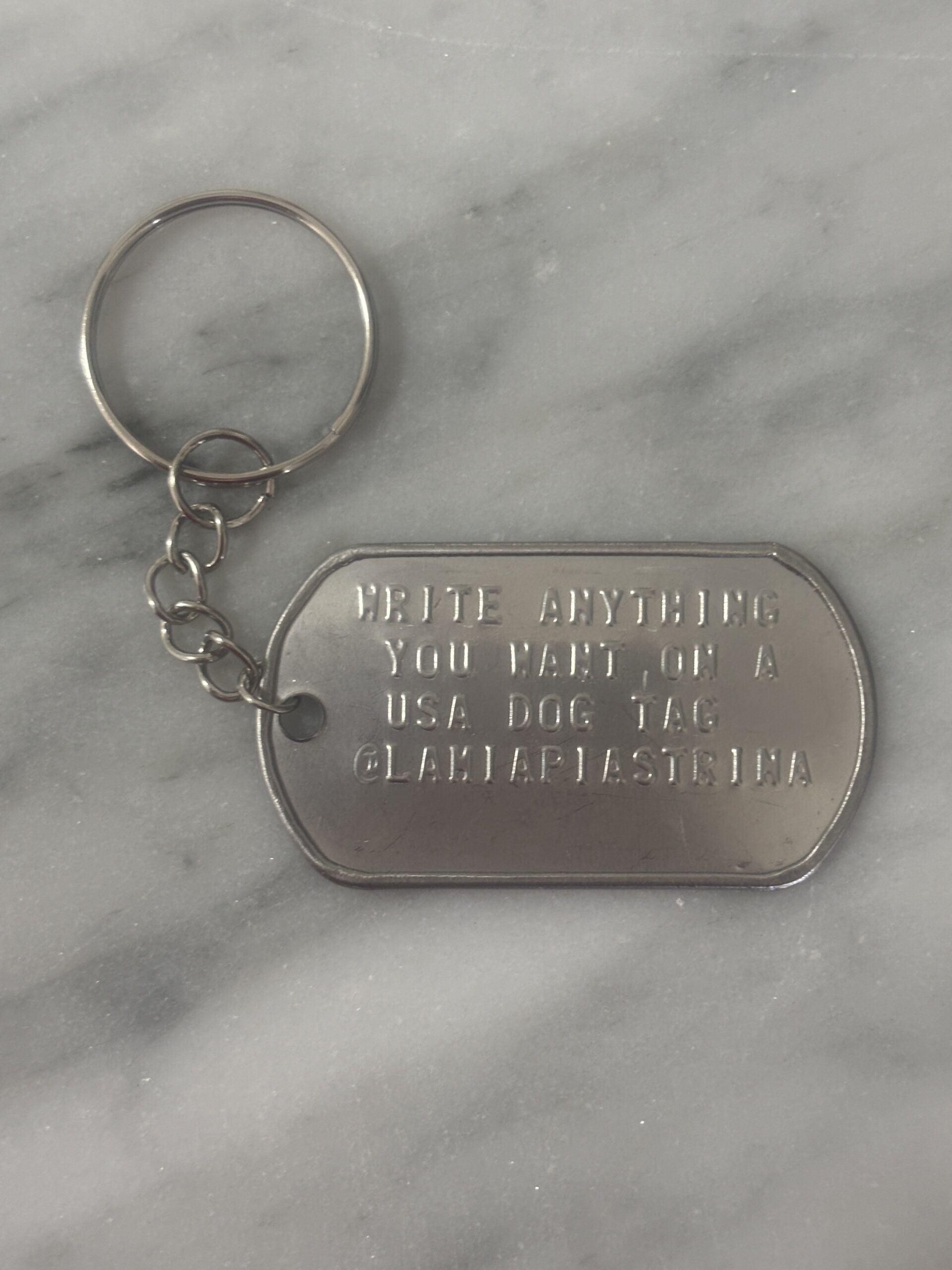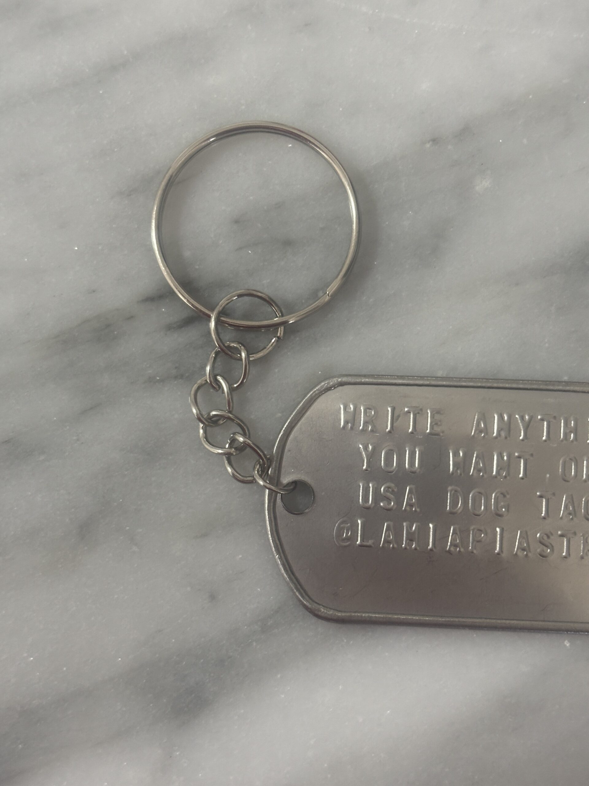 Portachiavi militare con piastrina dog tags americana, come quelle usate dai militari USA.